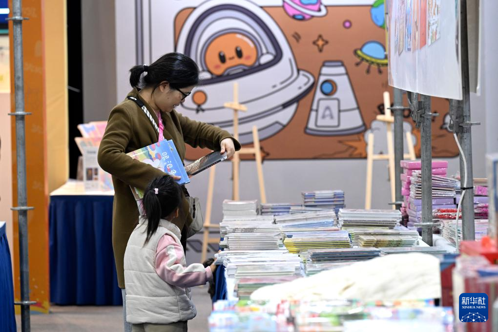 11月15日,小朋友和家長在黃山書會上選購圖書。