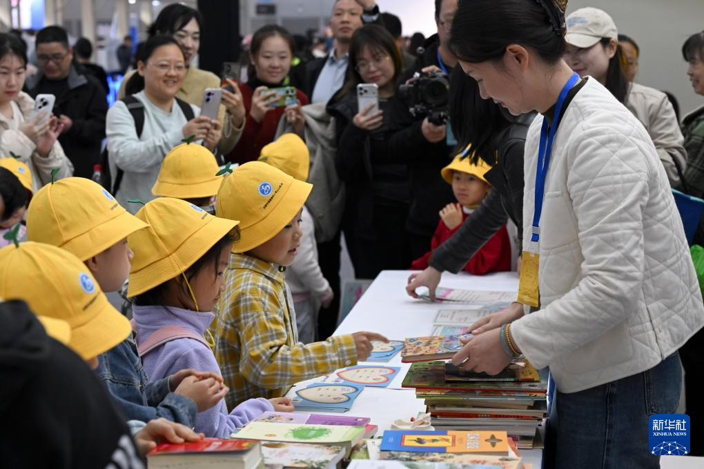 11月15日,小朋友在2025中國黃山書會“點亮閱讀微心愿”主題展區捐贈圖書,圖書將贈送給有需要的鄉村孩子,讓更多孩子享受美好閱讀生活。