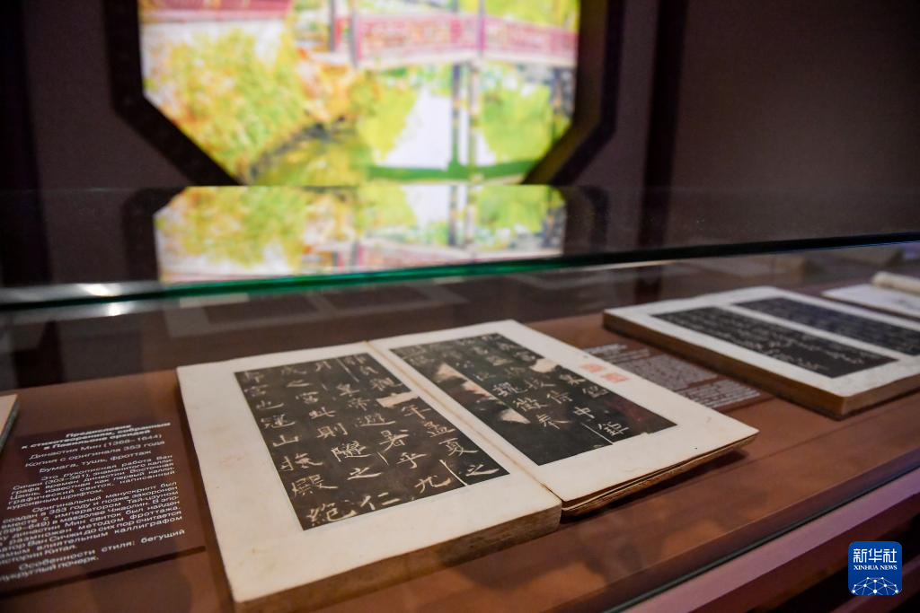 這是11月17日在俄羅斯莫斯科特列季亞科夫畫廊拍攝的“心之所向:中國國家博物館藏14—19世紀中國書畫藝術”展覽上的展品《九成宮醴泉銘》碑帖拓本。新華社發(亞歷山大攝)