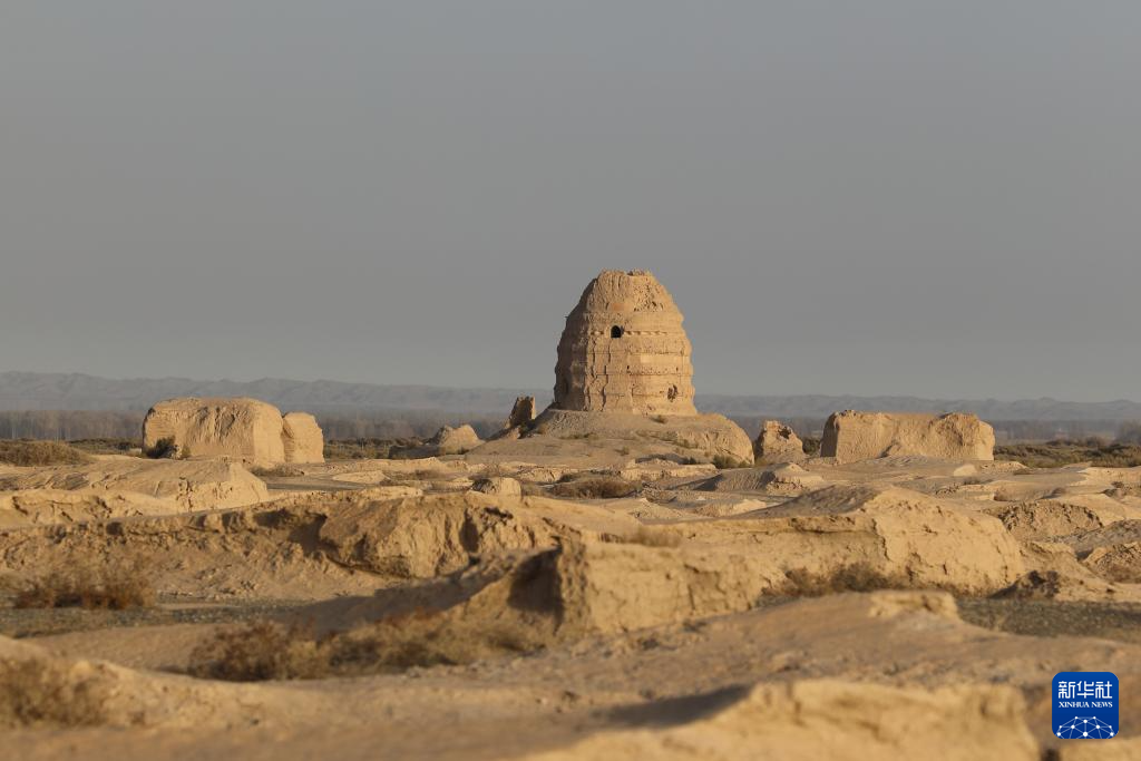 這是11月18日在甘肅省瓜州縣拍攝的塔爾寺遺址(無人機照片)。