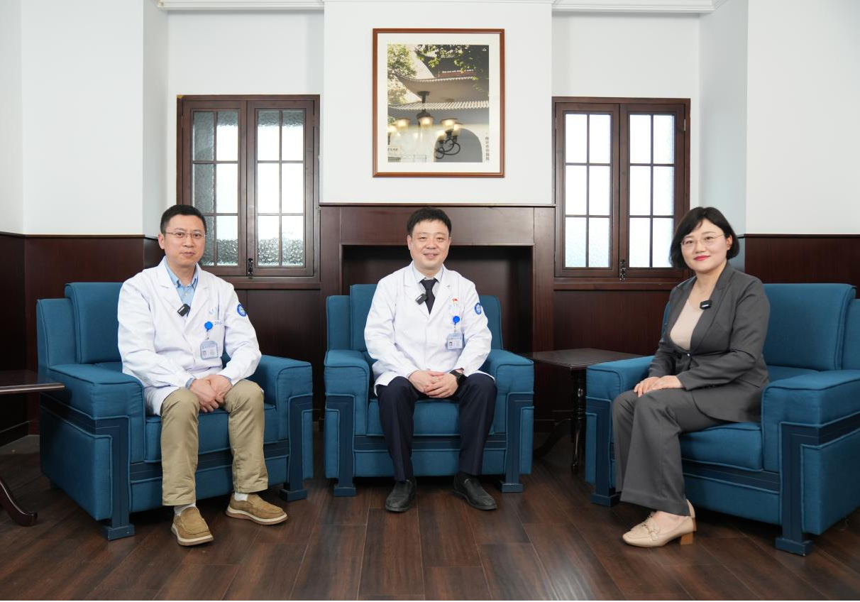 南京市中醫院黨委委員、副院長章陽(中),以及南京市中醫院減重示范中心執行主任張彥亮(左)接受新華網采訪