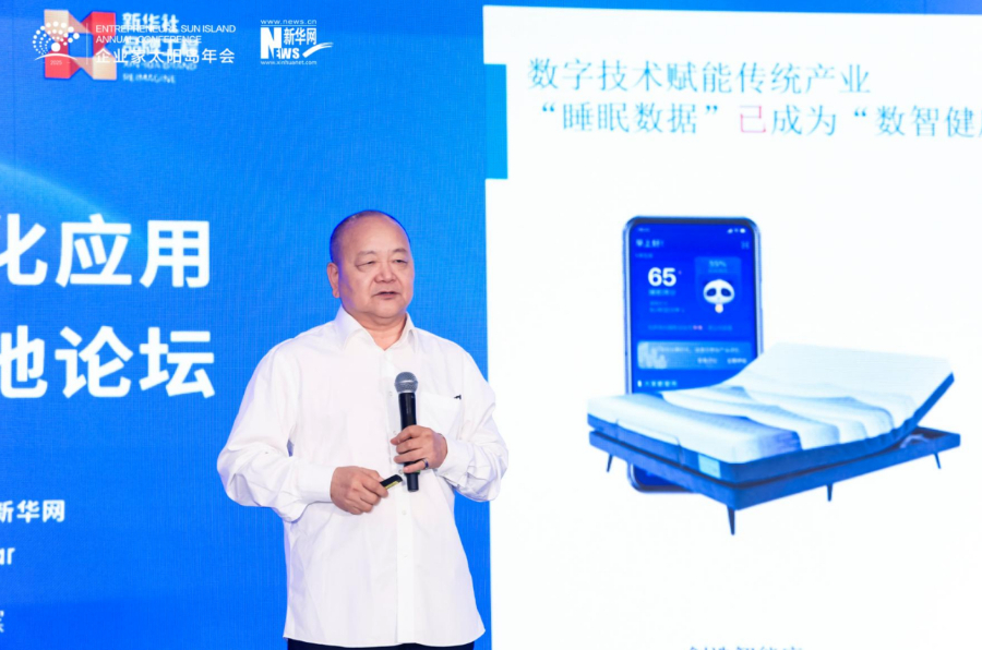 麒盛科技股份有限公司董事長唐國海以“數字睡眠”場景為例,介紹了人工智能重塑健康產業的路徑。唐國海表示,公司了構建“1+N”數字睡眠生態——以智能床為核心,聯動數字藥品、數字療法和腦機接口,打造康養、育嬰、午休等主題空間,構建“十五分鐘”數智健康服務圈,助力“老有數養、病有專醫”。