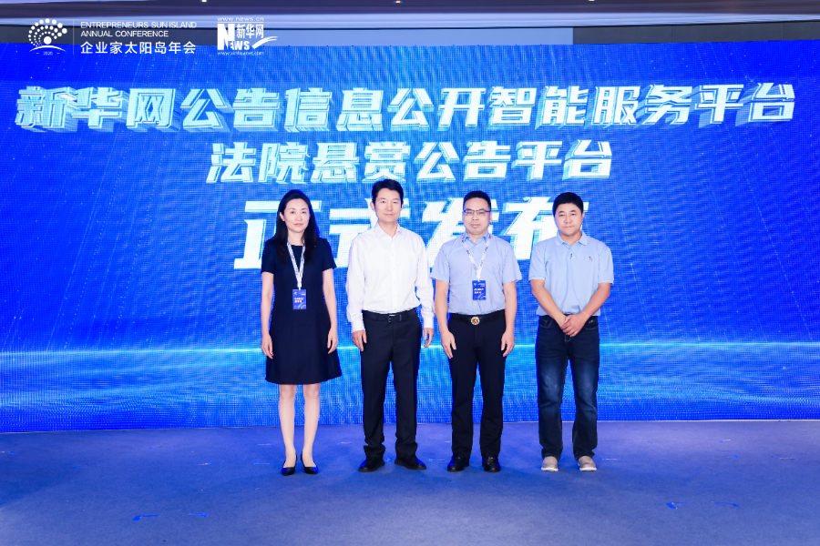圖為“新華網公告信息公開智能服務平臺-法院懸賞公告平臺”發布儀式。新華炫聞(北京)移動傳媒科技有限公司執行董事、總經理胥斌(左二),億達律師事務所高級合伙人陳錦龍(右二),大成律師事務所高級合伙人宋婉凝(左一),清華大學集成電路學院王光奇(右一)共同見證發布。新華網發