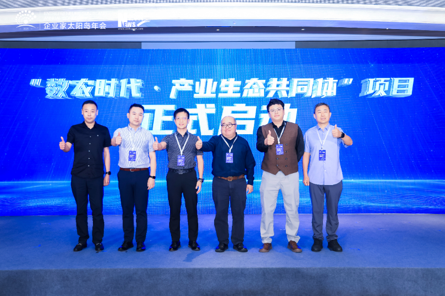 圖為“數農時代·產業生態共同體”項目啟動儀式。新華網融媒體未來研究院院長楊溟(右三)、朗毅科技總裁張智(左三)、寶杰富硒科技總裁羅潤發(右二)、中國農業科學院鄉村規劃研究與咨詢中心李偉(左二)、谷酷文化董事長郭承志(右一)、美蘭德總經理周翔宇(左一)共同發布。新華網發