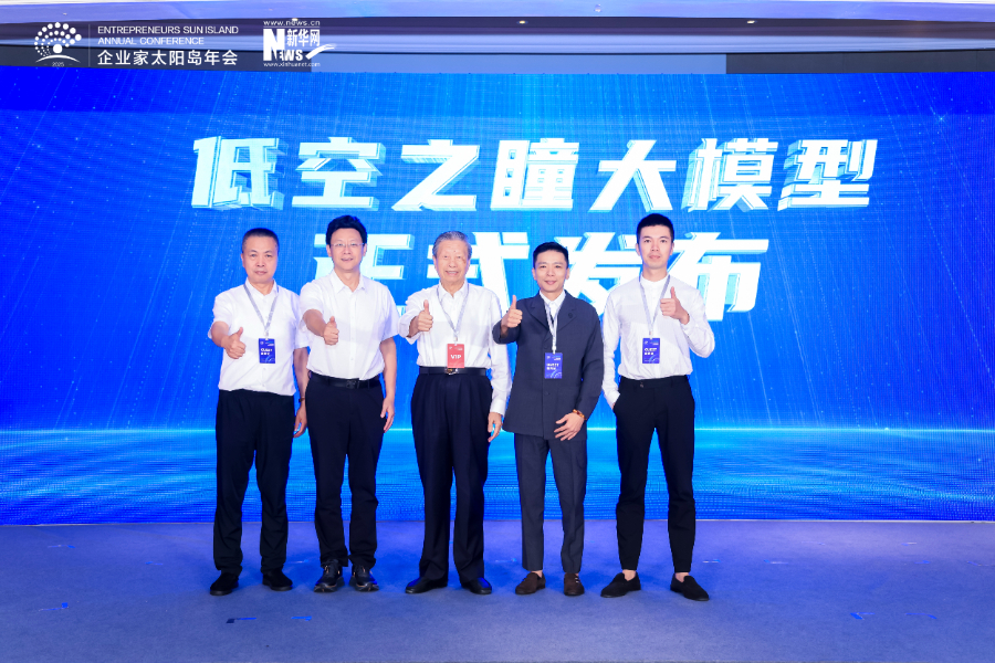 圖為“低空之瞳”大模型發布儀式。中國工程院院士、中國航空學會副理事長劉大響(左三),新華網黨委書記、董事長儲學軍(左二),瑞森網安董事長林少鵬(右二),廣東南方應急管理研究院執行院長王文杰(左一),視造智能總經理林斌(右一)共同發布。新華網發