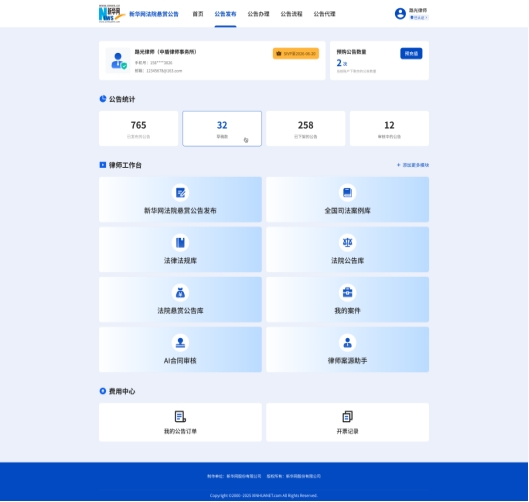 在信息發布合規性方面,平臺建立起多重安全防線,確保內容發布全過程合法、合規、可控。所有發布人需通過實名認證并上傳律師執業證后方可操作。公告內容須附法院蓋章原件,并經平臺智能審核系統多維度交叉校驗,確保文書真實有效。平臺嚴格遵循《個人信息保護法》要求,對舉報人及相關當事人信息進行脫敏處理,并通過全鏈路智能風控系統實時監測可疑行為,精準識別高風險操作,全面保障數據安全與用戶隱私。