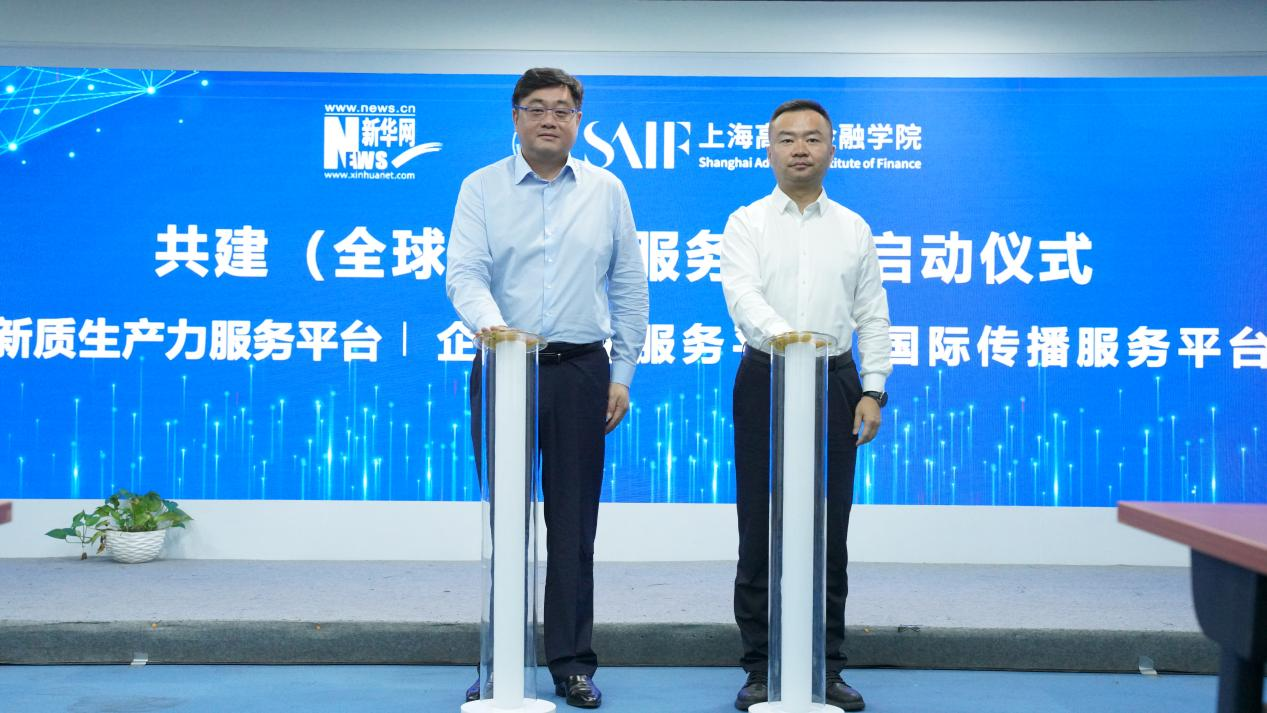 新華網副總裁張芮寧、上海交通大學上海高級金融學院副院長羅譞啟動共建(全球)海外服務平臺。新華網 王小驥攝
