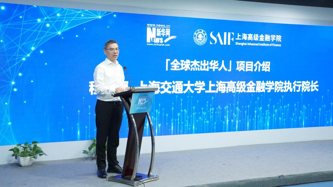 上海交通大學上海高級金融學院執行院長程仕軍介紹“全球杰出華人”項目。新華網 王小驥攝