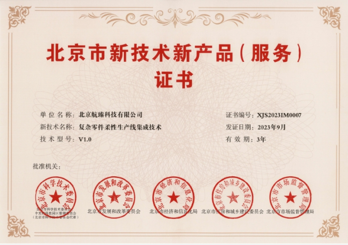 航臻科技的復雜零件柔性生產線集成技術獲得北京市新技術新產品(服務)證書