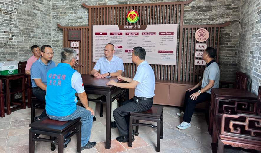 針對社區居委會無祠堂的實際情況,沙灣街將這一模式延伸至榕樹下、涼亭中,讓“說理”場景更貼近群眾生活。如古東村在村民聚集的涼亭打造“說理亭”,延續“主禮員主持、鄉賢參與、依法調解”的核心機制;社區居委會則掛牌設立“祠堂說理”工作室,用居民熟悉的“拉家?!狈绞交忄徖锛m紛。這種“形式可變、內核不變”的創新實踐,真正實現從“祠堂說理”到“全域說理”的延伸。