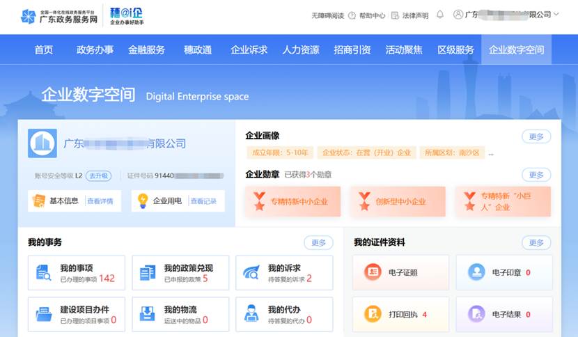 開展個性服務,實現“一企一空間”。利用區塊鏈、AI技術,打造企業專屬數字空間,匯聚全量企業電子證照、電子印章、授權信息、實時辦事進度等核心數據,多維度生成企業畫像,智能分析企業需求,精準推送個性化服務資源,依托企業用戶畫像和大數據技術,動態更新企業資料、企業勛章等信息,為商業合作提供可信支撐。