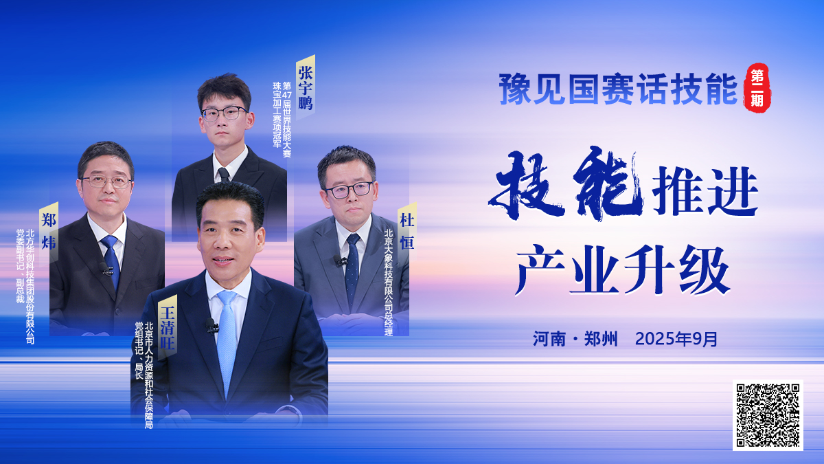新華網北京9月22日電 第三屆全國技能大賽于今年9月19日至23日在河南鄭州舉辦,這場我國技能人才領域的頂級盛會,不僅是技能精英風采的展示平臺,更是推動技能強國建設、培育高素質技術技能人才的關鍵抓手。為深挖大賽價值、傳遞技能人才成長正能量,人社部與新華網聯合推出系列高端訪談節目《豫見國賽話技能》。節目第二期聚焦“技能推進產業升級”,北京市人力資源和社會保障局黨組書記、局長王清旺;北方華創科技集團股份有限公司黨委副書記、副總裁鄭煒;北京大象科技有限公司總經理杜恒;第47屆世界技能大賽珠寶加工賽項冠軍,北京市工藝美術技師學院教師張宇鵬,分別從政府、企業、技能人才個體等視角,深入探討技能人才隊伍建設與產業升級的緊密關聯,分享實踐經驗與未來規劃。