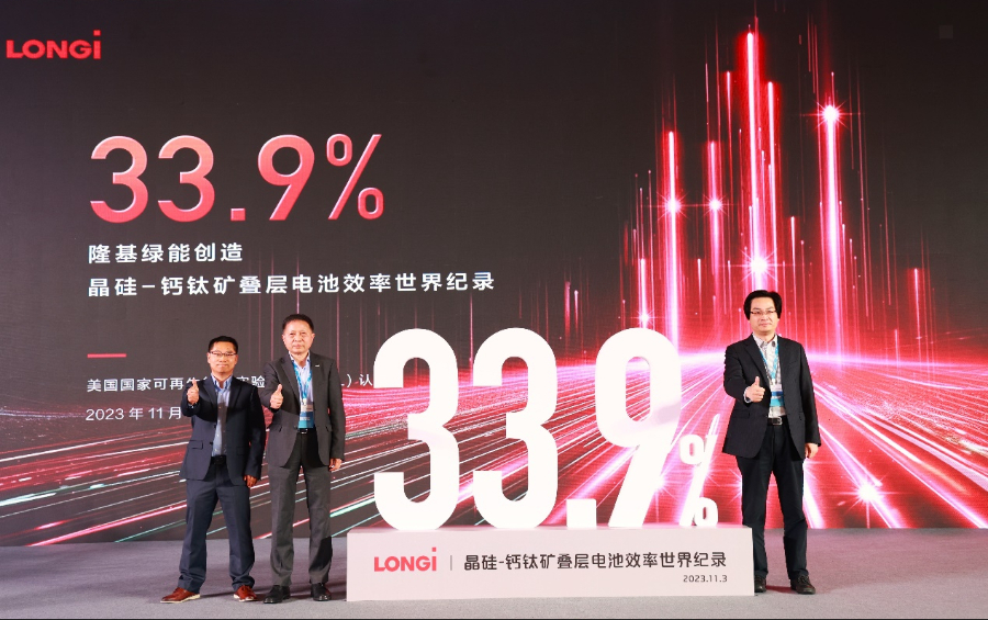 11月3日,隆基綠能宣布33.9%的晶硅-鈣鈦礦疊層電池效率世界紀錄