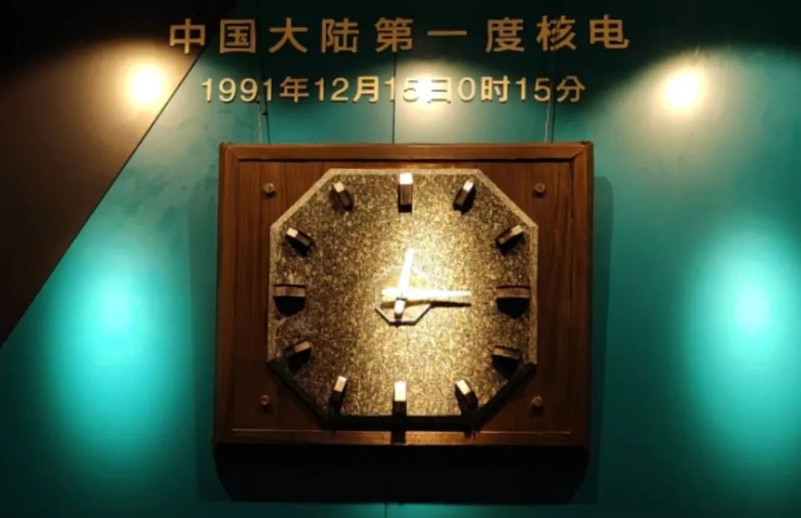 在中國核電科技館的墻上,一塊石英鐘端正地掛著。在館內略顯昏黃的燈光下,一束光打在時針和分針上,指針定格在0時15分。它記錄著三十余年前的1991年12月15日秦山核電30萬千瓦核電機組成功并網發電的歷史性瞬間。那一刻,我國核電事業翻開了嶄新的一頁,邁出了從無到有的重要一步。