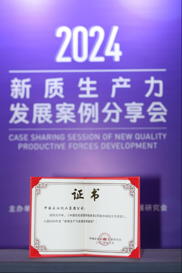 新華網北京8月26日電(張昊哲)8月22日至24日,以“新質生產力:新產業、新模式、新動能”為主題的2024太陽島企業家年會在黑龍江省哈爾濱市舉辦。作為年會重磅活動之一,由新華網和中國企業改革與發展研究會聯合主辦的“新興向榮 質勝未來——新質生產力發展案例分享會”于23日下午舉行。會上,中國石化新星新疆庫車2萬噸/年綠氫示范項目獲評2024年度“新質生產力發展優秀案例”。