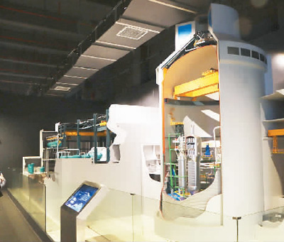 從模型結構可以看到,“國和一號”外層被厚厚的混凝土層包裹?!斑@是屏蔽廠房,厚1.1米,兩層鋼板內部填充高性能、高強度的混凝土,可抵御臺風、海嘯來襲或是飛機撞擊?!眲⑿吕榻B。