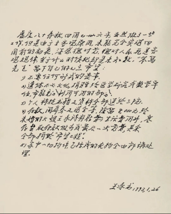 這樣一位居功至偉的女科學家,在生活中卻簡樸到讓人難以置信?!坝腥苏f,王承書先生‘有權不會用、有錢不會花、有福不會享’?!蓖醭袝壬膶W生、退休前任中核集團核理化院高級工程師的張連合對此深有體會,王先生從不搞特殊,每天都在食堂自己排隊打飯。她對自己總是“摳摳搜搜”,對黨和國家卻是無比大方。從入黨時起,她就從280元的工資中拿出200元交黨費,剩下的80多元還經常用于資助生活困難人員以及學術資料購置等。她在遺囑中,將個人書籍和科技資料全部送給了核理化院,點滴積攢的約10萬元存款全部捐給“希望工程”,另有零存整取的7222.88元作為最后一次黨費,交給組織。