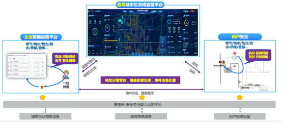 與此同時,開封新奧燃氣作為當地主要的管道燃氣企業,基于聚安網-安全專業能力認知平臺的能力,接入開封市城市生命線安全監管平臺,實現了政府、企業、用戶三端聯動協同,做到了燃氣風險早預警、燃氣隱患早整治,較好地扛牢了企業的安全主體責任,為政府安全監管提供了有力抓手。