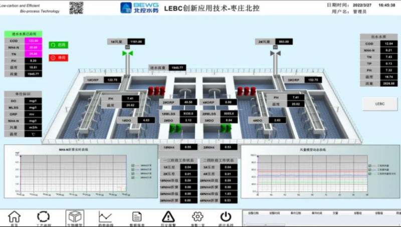 LEBC低碳高效生化控制系統作為北水科技智水雙擎里的核心產品之一,以硬件+軟件的結合,兼具北水OS的智控系統以及北水IOT智慧感知設備的融合,實現水廠自動加藥、自動檢測、自動清洗、自動控制等,打造智能化高效運行水廠。此產品已在30余個項目成功應用,服務運行規模超100萬噸/日。