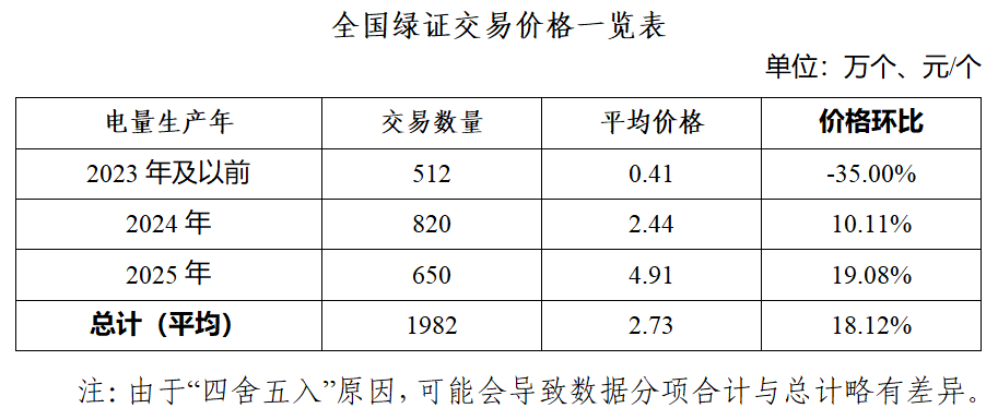 2025年5月,全國綠證單獨交易1982萬個,交易平均價格為2.73元/個,環比增長18.12%。