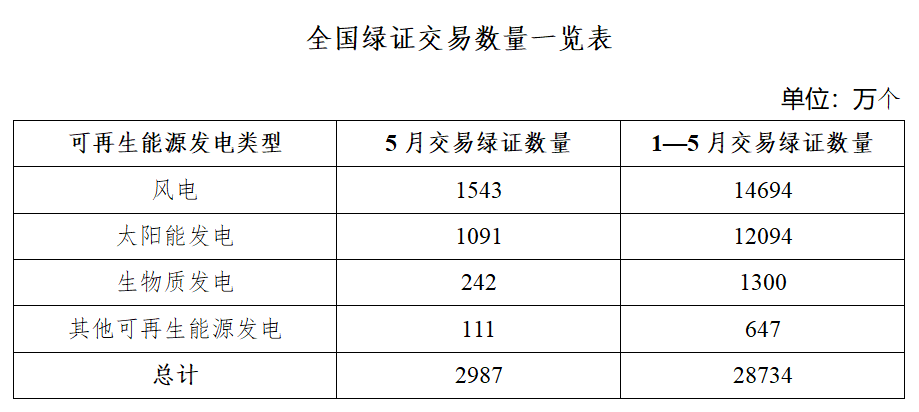 2025年5月,全國交易綠證2987萬個,其中綠色電力交易綠證1005萬個。2025年1-5月,全國交易綠證2.87億個,其中綠色電力交易綠證9623萬個。(調減1-4月交易綠證數量168萬個)
