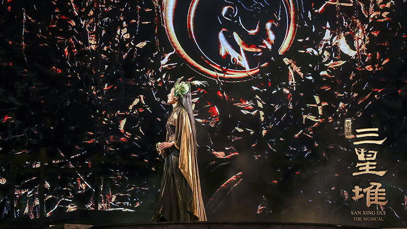 音樂劇《三星堆》以三星堆遺址為背景,通過跨時空連接古蜀國與現代國,讓觀眾在劇場里宛如置身考古現場,身臨其境般感悟和欣賞燦爛文明曾經的模樣。該劇匯聚了國內外頂尖創制團隊,包括榮獲多項大獎的編劇、導演和舞美設計師,以及業內知名的音樂制作人和服裝設計師。制作團隊經過多輪打磨與調整,力求沉浸式還原“古蜀王朝”的風采,讓觀眾感受古蜀國的璀璨與輝煌。