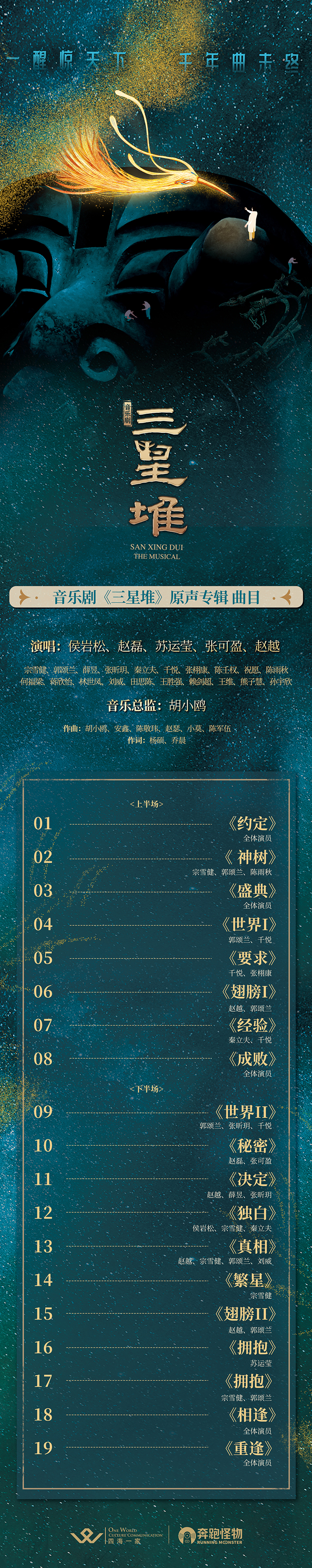 今日,音樂劇《三星堆》發布原聲專輯,收錄原創音樂作品19首,由侯巖松、趙磊、蘇運瑩、張可盈、趙越、宗雪健、郭頌蘭、薛昱、張昕玥、秦立夫、千悅、張栩康等演員獻唱,最大化保留原汁原味舞臺魅力,再現古蜀與現代兩個時空交錯的戲劇張力。