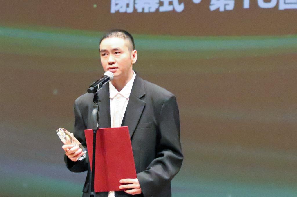 10月28日,在日本東京,導演甘劍宇上臺領獎。甘劍宇執導的《誤殺3》獲評“金鶴獎”最佳作品獎。新華社記者 李子越 攝