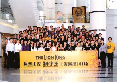 很巧的是,兩個月之后,我到香港開會,居然被安排下榻在他們的迪士尼酒店。唐先生和助手特地趕來酒店找我,對我說:“好消息!總公司同意以迪士尼的名義,冠名贊助這次音樂劇演出。這樣一來,迪士尼總公司會支付你們80萬美金的冠名贊助費,也就是說,你們只要付給迪士尼公司20萬美金的版稅就可以了?!蔽乙凰?,100場演出支付版稅,相當于一場演出只要支付1.6萬元人民幣的版稅,這對我們來說真可謂“雪中送炭”??!就這樣,經過差不多8個月的艱苦談判,2006年春節后,我們與迪士尼戲劇公司終于達成演出協議,中國也成為了除英美澳之外,第四個演出英文原版音樂劇《獅子王》的國家,這部魅力四射、精妙絕倫的音樂劇首次在中國上海與亞洲觀眾見面?!丢{子王》在上海大劇院原本計劃上演100場,為了打破《劇院魅影》的紀錄,又加演了一場,總共演出101場。