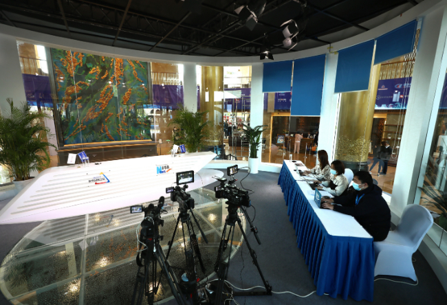 與會嘉賓將在大會演播間接受采訪。新華網 陳延特 攝