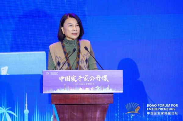 12月3日,珠海格力電器股份有限公司董事長兼總裁董明珠在2021中國企業家博鰲論壇“中國實干家公開課”上做主題演講。