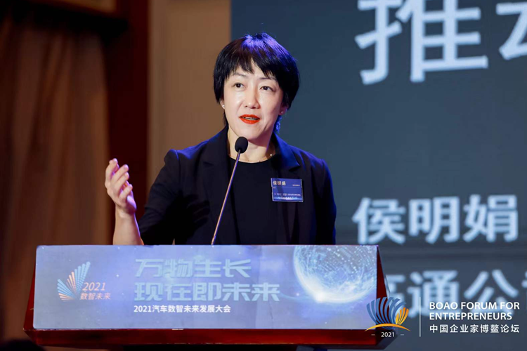 圖為高通公司全球副總裁侯明娟在2021中國企業家博鰲論壇汽車分論壇暨2021汽車數智未來發展大會上發言