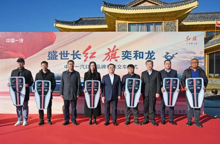 調研期間,和龍市政府舉辦中國一汽紅旗品牌車輛交車儀式。王國強表示,自2013年定點幫扶和龍市以來,雙方建立了深厚的友誼,此次20位和龍群眾成為中國一汽用戶,既是和龍人民生活水平提升的一個縮影,也是中國一汽與和龍市深厚友誼的見證。