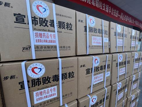 今年春節前夕,北京豐臺區等地出現疫情,醫護人員加班加點開展工作,為控制疫情付出艱苦努力。為支持醫護工作者,由中央統戰部指導的大型醫療公益項目“同心·共鑄中國心”項目組委會(以下簡稱“組委會”)春節前積極協調步長制藥加班生產“宣肺敗毒顆?!?,以便盡快捐贈給醫務工作者、用于日常防治新冠病毒。該藥物是中國工程院院士張伯禮等醫學專家于2020年武漢抗疫期間研發出的藥品。