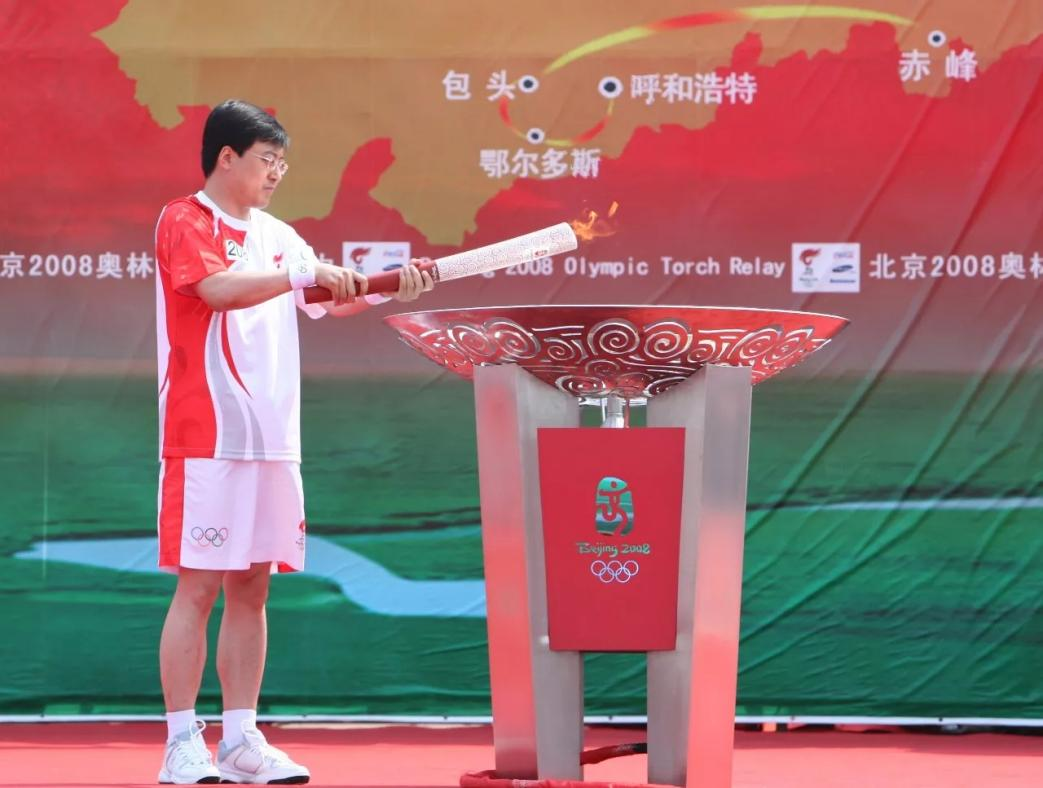 2008年7月,呼和浩特,潘剛點燃奧運圣火盆