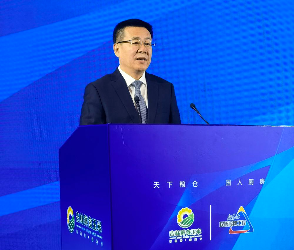 3月3日,在“吉林鮮食玉米”入選新華社民族品牌工程簽約儀式暨吉林鮮食玉米全產業鏈標準發布會上,吉林省糧食和物資儲備局局長馮喜亮致辭。