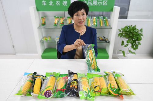 “東北農嫂”創立人隋書俠展示出口吉林鮮食玉米。新華社記者 王昊飛 攝