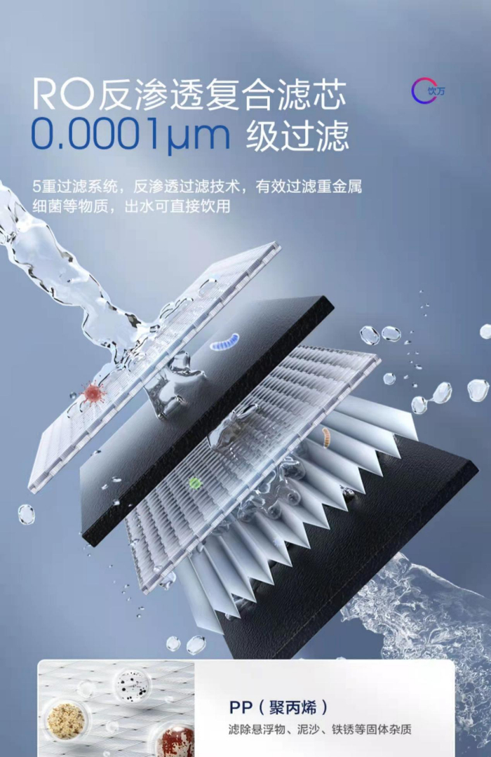 添可飲萬智能凈水機采用了一體式復合濾芯,5層多維過濾,精度高達0.0001微米,可濾除重金屬、有機物、抗生素、細菌病毒等有害物質,出水就能直飲,第三方檢測除菌率高達99.9999%;后置椰殼活性炭,口感甘甜,特別適合腸胃嬌弱敏感的母嬰人群。
