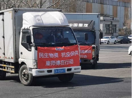 為保障援助物資按時到位,康師傅特別加強工廠封控管理,許多工廠員工更是主動放棄休假自愿駐廠力保生產。援助物資整備裝車時,工廠方面協同各轄區行銷公司,為車隊辦理通行證,力爭克服一切困難,將物資送至一線。有些員工甚至駕駛自家車輛前往庫房充當搬運工,冒著東北3月初的大雪天執行物資搬運調度工作。顧不得休息的他們,又給車輛換上防滑胎,將每一箱捐贈物資以最快速度,冒著雪天路滑的風險送往一線,他們的心和素未謀面的防疫人員緊緊相連。