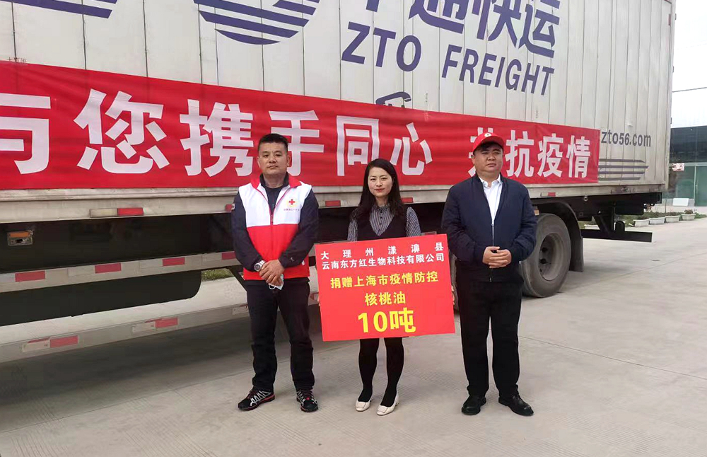在漾濞縣疫情防控指揮部牽頭組織,漾濞縣紅十字會動員協調下,云南東方紅生物科技有限公司積極響應支持,捐贈御福年核桃油10噸,共計價值1020600元,馳援上海市奉賢區共同抗擊疫情。