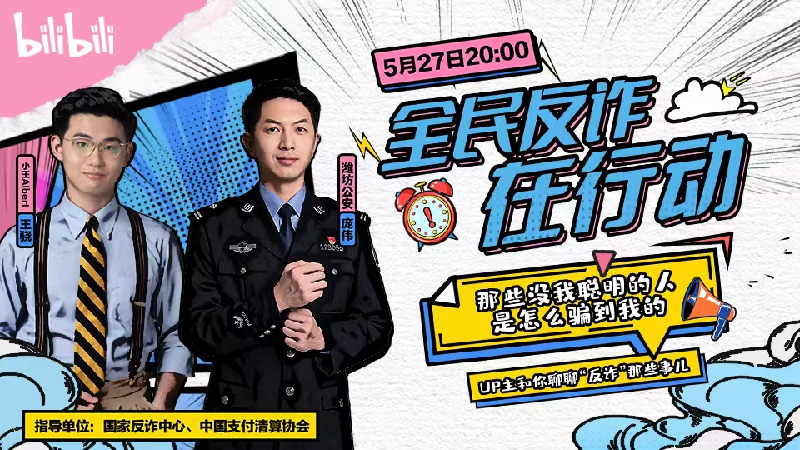 針對當前電信網絡詐騙犯罪受害群體年輕化特征明顯的問題,5月27日,國家反詐中心與中國支付清算協會聯合發起,邀請嗶哩嗶哩UP主連線反詐民警開展“青年群體防詐反詐”主題直播活動。據悉,這是由中央宣傳部、公安部共同發起的“全民反詐在行動”集中宣傳月中的一項活動。