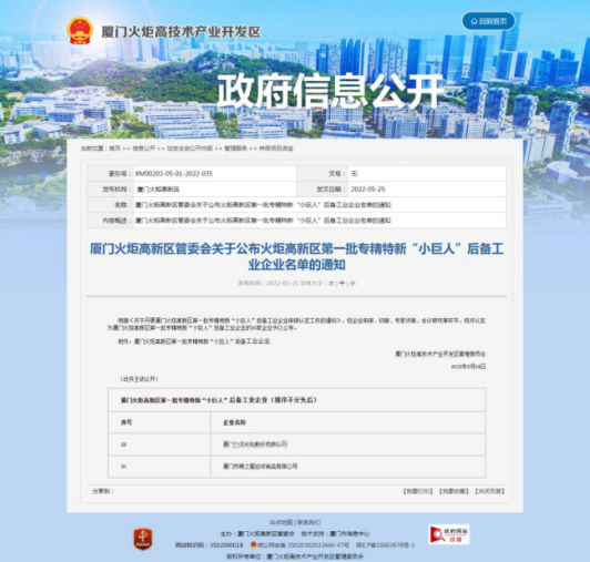 圖:廈門火炬高新區第一批專精特新“小巨人”后備工業企業名單公布