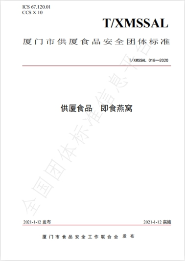 圖:廈門市供廈食品安全團體標準《供廈標準即食燕窩》