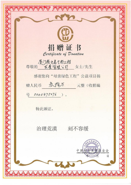 一直以來,燕之屋倡導綠色生態可持續發展的理念,為消費者生產健康安全的高質量產品。除此之外,燕之屋始終貫徹落實“堅持人與自然和諧共生”的新時代中國特色社會主義基本方略,倡導人與自然的平衡。2021年1月25日,燕之屋向中國婦女發展基金會捐款30萬元,用于易媽媽的“母親綠色工程專項基金”,并收到NPO綠色生命組織發來的感謝信。同年6月24日,燕之屋攜手NPO綠色生命組織創始人、理事長易媽媽走進敦煌,與二十多位燕之屋粉絲共同種下樹苗,一起見證燕之屋生態林揭碑儀式,并向NPO綠色生命環保公益組織捐款,共同為敦煌筑起防風固沙生命線,守護人與自然和諧之美。