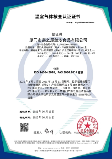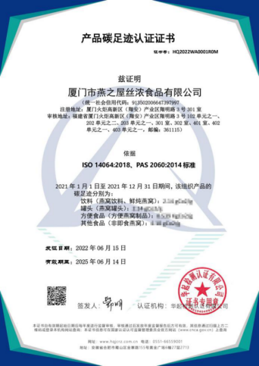 近日,燕之屋榮獲“產品碳足跡認證證書”與“溫室氣體核查認證證書”,這標志著燕之屋在踐行 “碳達峰、碳中和”目標上邁出了實質性一步。
