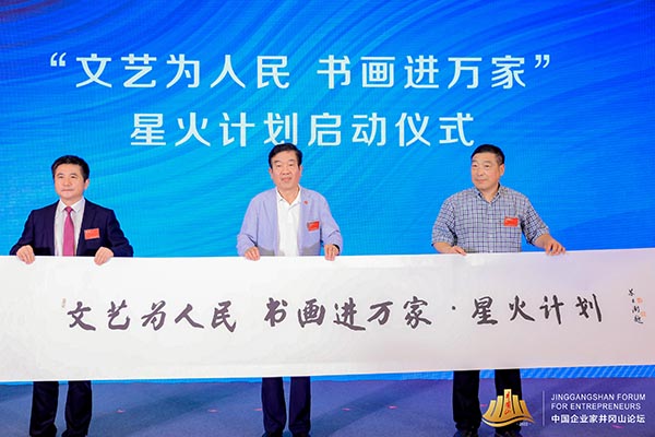 新華網井岡山8月3日電(伊媛) 8月3日,在江西井岡山舉辦的2022中國文化經濟發展論壇上,“文藝為人民 書畫進萬家”星火計劃正式啟動。