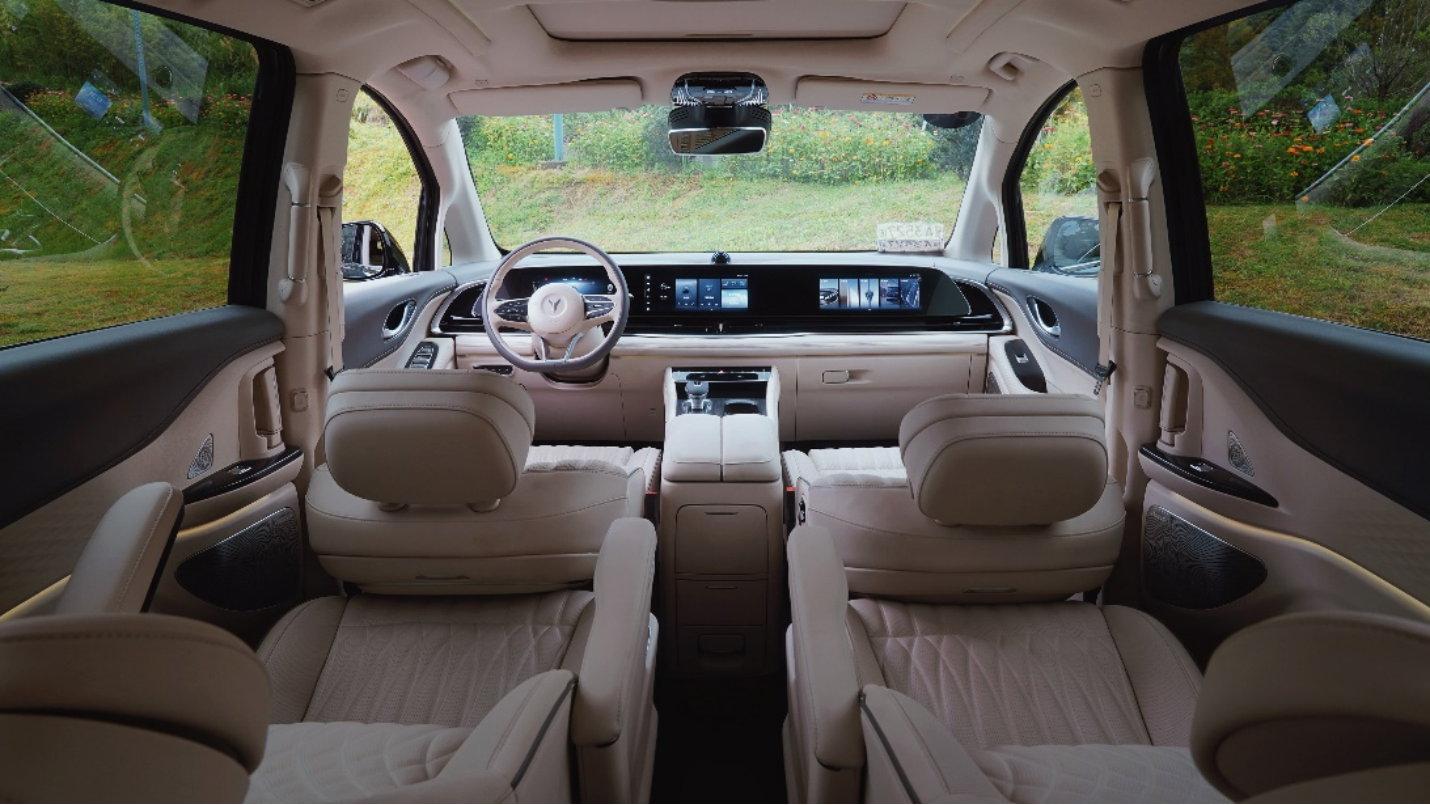 嵐圖夢想家分別推出有四座版和七座版車型。其中七座版車型采用2+2+3的座椅布局,可實現靈活多變的出行場景。加之座椅前排還配有小桌板和多向調節副駕老板鍵,必要時可在車內滿足辦公需求。