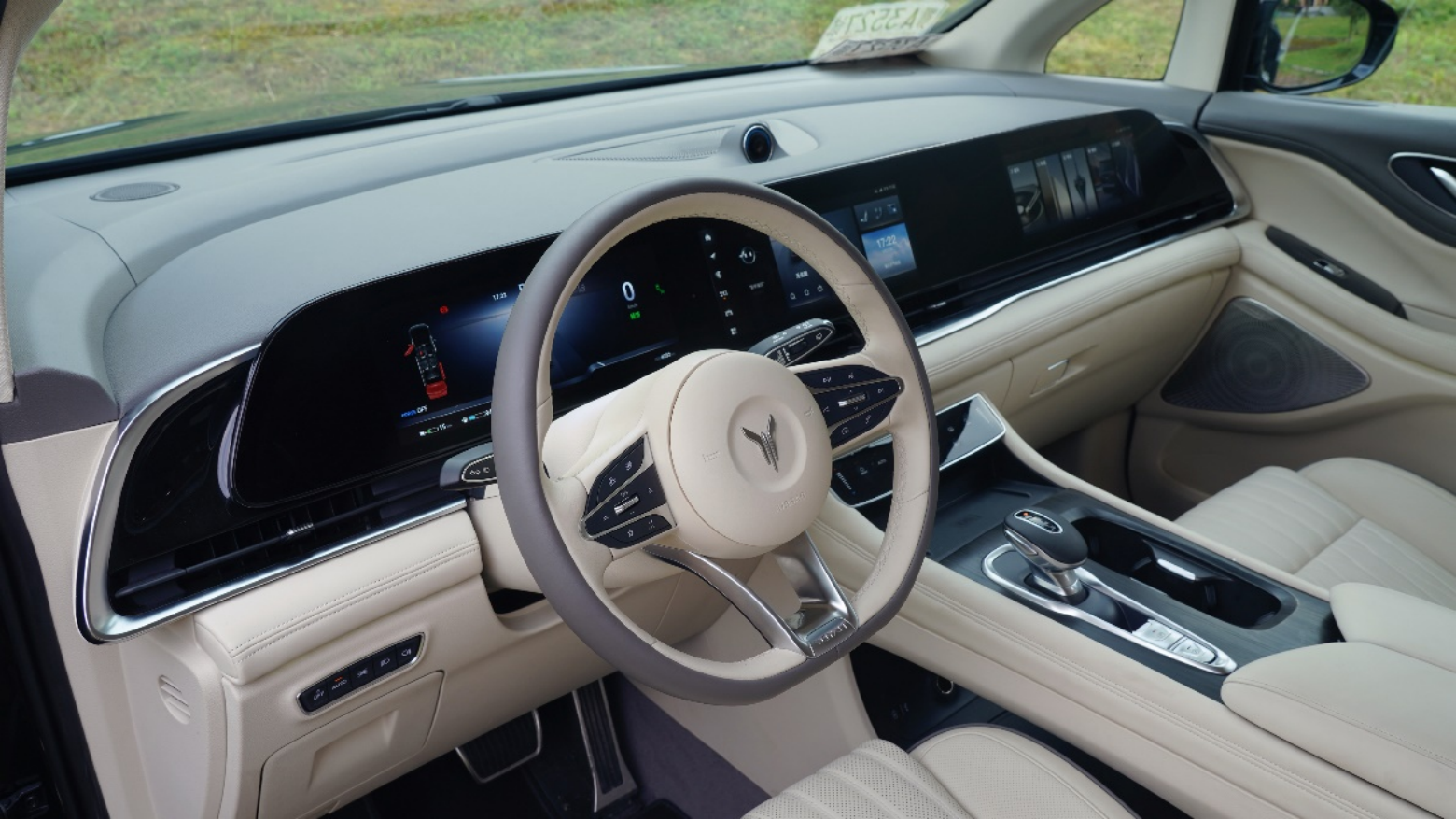內飾方面,游艇式環保座艙設計搭配駝棕色、棉米色2種內飾配色,令嵐圖夢想家內飾富有豪華格調,在中控臺、門板以及中央扶手箱等處均采用軟包材質進行包裹,觸感細膩,絎縫打孔精致有序,可謂細節之處見真章。