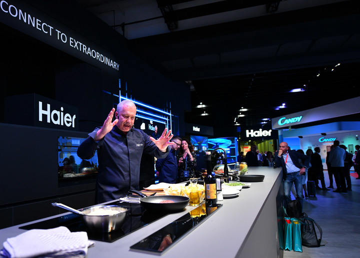 9月2日,在德國柏林國際消費電子展海爾展區,工作人員演示一款烹飪設備。