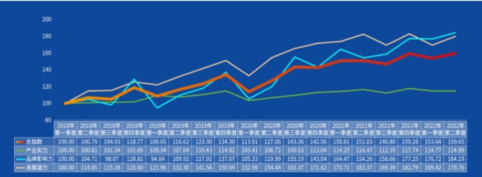 發展潛力指數反彈回升。仙游創新思路,運用平臺經濟模式推動傳統產業轉型升級,以“房地產+家裝”場景一體化定制模式、倉儲交易共享中心模式、跨境電商模式以及“仙作+”融合營銷模式拓展市場。在深耕線下市場的同時拓展線上市場,仙游抖音電商直播基地網絡銷售業績優良。仙游鼓勵工藝人傳承創新,注重各級各類工藝人才培養和儲備,加強知識產權保護、行業質檢保障制度建設,提升仙作產業的創新潛力和發展質量,使仙作產業不斷煥出發展生機。二季度,仙作發展潛力指數較上一季度環比增長6.1%,指數呈現反彈回升。